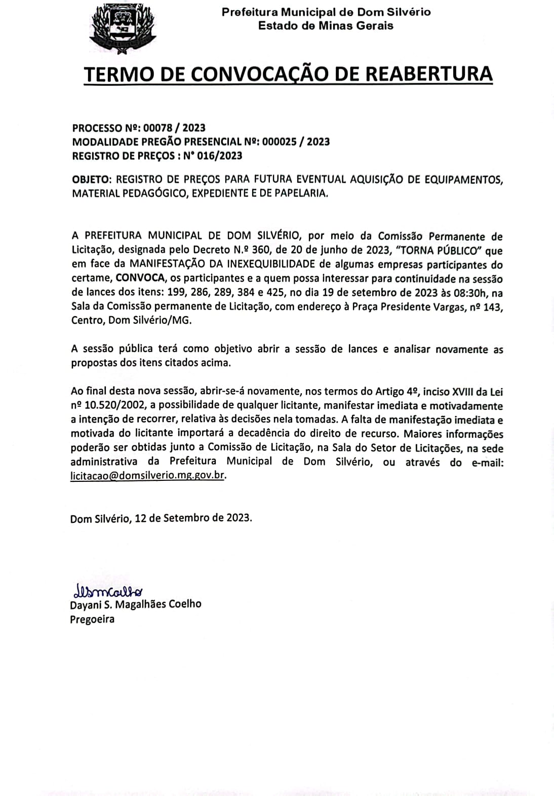 Reabertura: 19/09/2023 às 08:30 horas