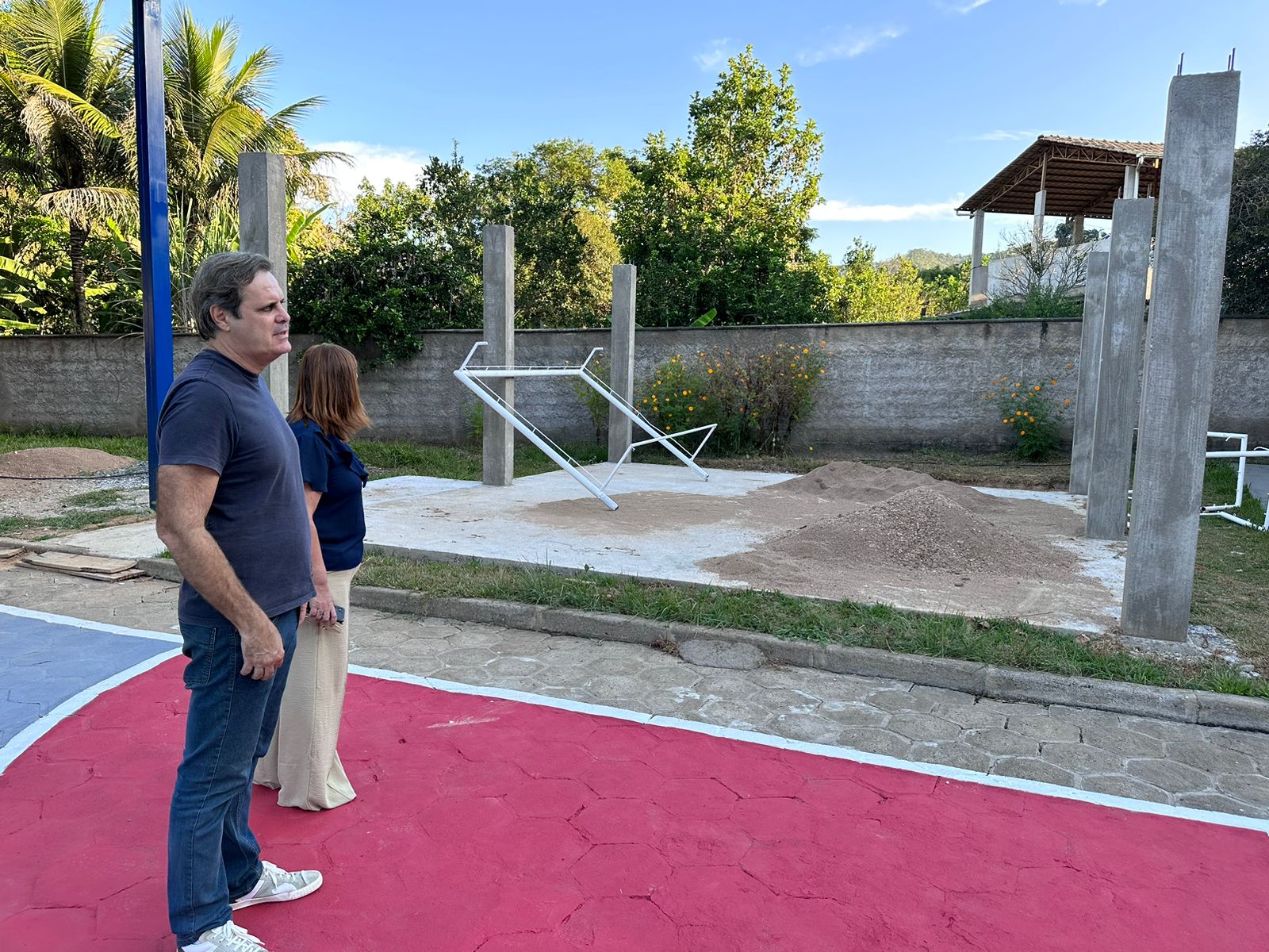 Na tarde dessa terça-feira(4/4), o prefeito José Bráulio, a Secretária de Educação, Geralda Cristina Barcellos Henriques e a assessora Roberta Barcellos, visitaram as obras que acontecem na área externa da Escola Municipal Nossa Senhora da Saúde.
