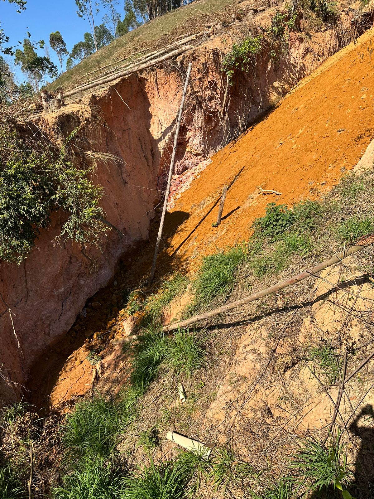 Para a correção do problema e posterior construção de canaleta dissipadora de água, já foram encaminhados 100 caminhões de terra para o local e, esta semana, as equipes continuam mobilizadas em solucionar o problema que consumiu parte da rua José Palermo dos Santos.