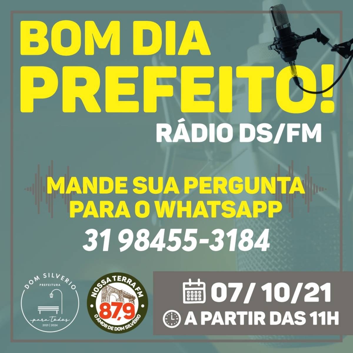 O Prefeito José Bráulio estará dia 07/10/2021 às 11H na Rádio DS FM.